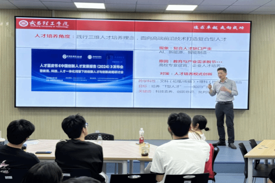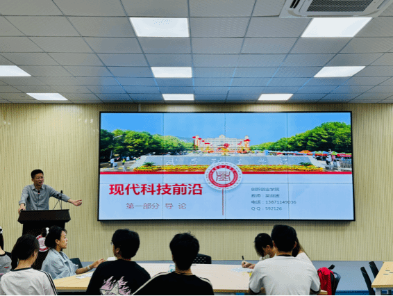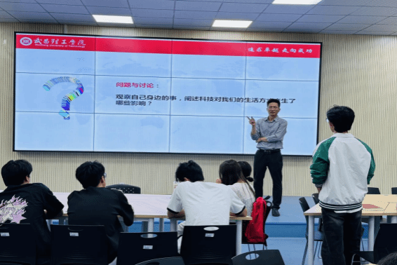 本次课程以“解码科技力量,探索未来边界”为主线。吴剑波博士从“科技如何改变我们”切入,结合人工智能、量子计算等前沿技术案例,阐述科技对生活方式、社会结构的重塑作用;在“为什么学习这门课”板块中,他强调“科技素养是未来竞争力的核心,创新需扎根于对趋势的敏锐洞察”;他以“人类如何走到今天”为题,梳理从工业革命到数字时代的重大突破,剖析技术迭代背后的逻辑;通过“我们现在站在哪里”引发学生思考,指出“在DeepSeek、脑机接口等颠覆性技术涌现的今天,青年应主动跨界交叉,融合创新”。课程中,学生们通过小组研讨,围绕“科技影响”“未来职业图景”等议题展开深度交流。