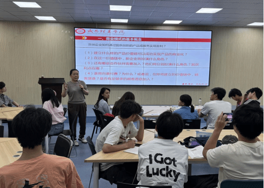 课程中,学生们通过分组讨论,围绕“分析创业机会”“机会识别”“设计商业模式”“平衡风险与收益”等议题展开激烈讨论。