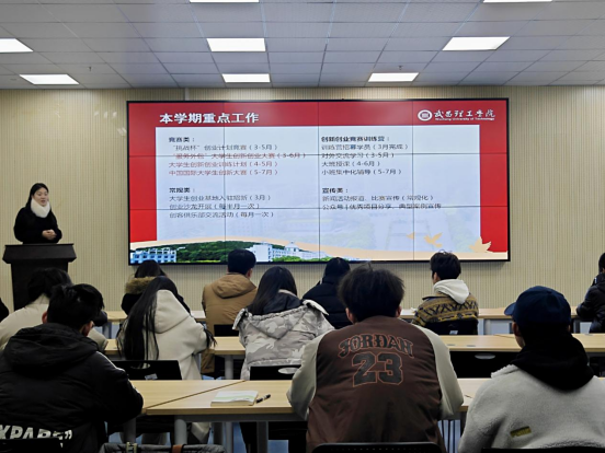 会议中,yl23455永利实践部指导老师魏宇琪围绕新学期中心工作进行部署与安排,进一步细化各部门职能分工,对本学期创新创业赛事组织、校园创新创业活动的开展、团队内部的建设等重点任务进行讲解,同时细化工作流程、时间节点与推进路径,为后续工作高效规范开展奠定坚实基础。