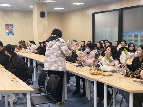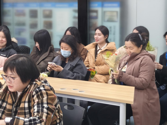 致辞结束,现场举行了温馨的献花仪式。一束束芬芳鲜花承载着敬意与祝福,送到每一位女教职工手中,花香与笑意交织,现场氛围温馨热烈。